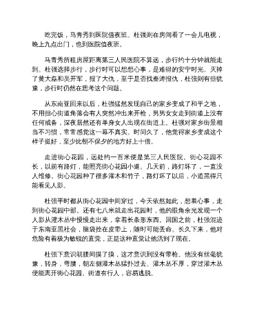 吃完饭,马青秀到医院值夜班。杜强则在房间看了一会儿电视,