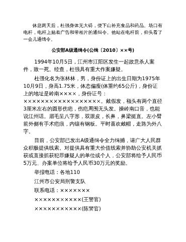 公安部A级通缉令(公缉〔2010〕××号)