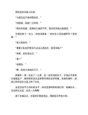 烧了衣服以后,甘甜来到田甜身边,用眼睛示意侯大利。
