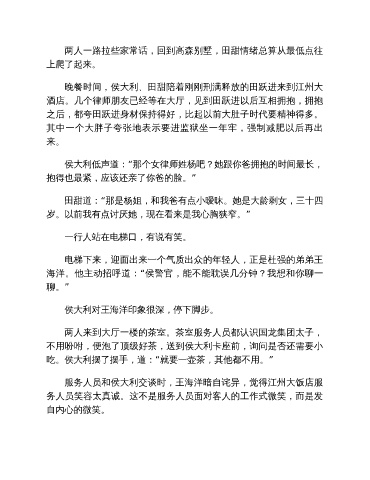 晚餐时间,侯大利、田甜陪着刚刚刑满释放的田跃进来到江州大