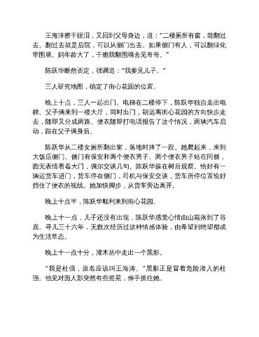 晚上十点,三人一起出门。电梯在二楼停下,陈跃华独自走出电