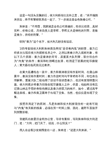 105专案组侯大利和朱林肩负查找“是否有内鬼”的职责,秦力已