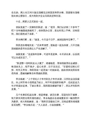 生生的。两人在江州大饭店顶楼见过侯国龙和李永梅,田甜留在顶楼