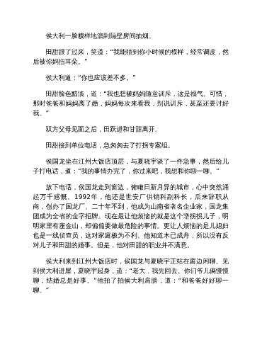 侯大利来到江州大饭店时,侯国龙与夏晓宇正站在窗边闲聊。见