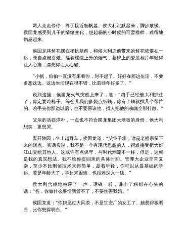 父亲的话很淳朴,一点也不符合国龙集团大老板的身份,侯大利