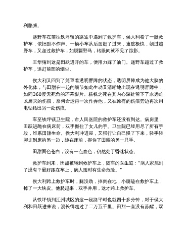 段,维系田甜生命。侯大利冲进屋,又强行让自己慢了下来,轻手轻