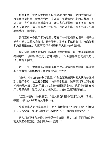 侯大利逡巡在资料柜前,随手拿出档案材料。每一本厚实的档案
