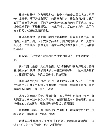 杜强养精蓄锐,体力明显占优,将中了枪的秦力压在地上,双手