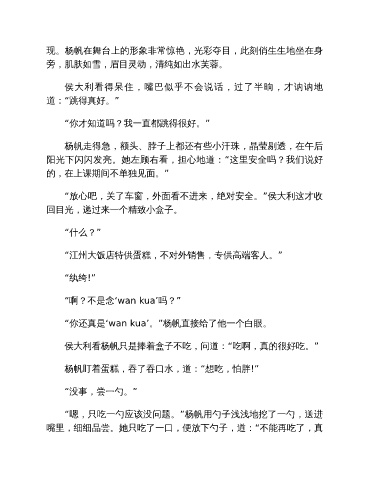 现。杨帆在舞台上的形象非常惊艳,光彩夺目,此刻俏生生地坐在身