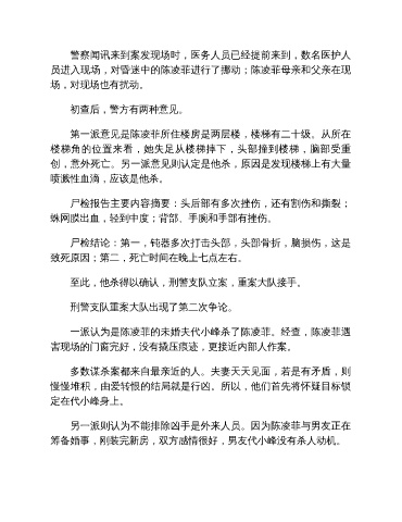 一派认为是陈凌菲的未婚夫代小峰杀了陈凌菲。经查,陈凌菲遇