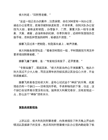 滕鹏飞将案卷交给侯大利,是有心试试这个“神探”的斤两。此案
