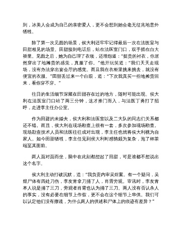 田甜相见的场景。田甜接到电话后,站在法医室门口,双手插在白大