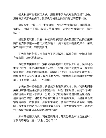 做过侦查实验以后,第四刀确实与前三刀有很大区别,侯大利心