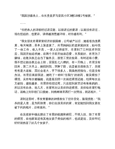 “你把杀人的详细经过讲清楚。以前讲过的要讲;以前没有讲过,