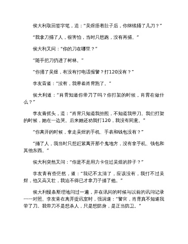 侯大利突然又问:“你是不是用力卡住过吴煜的脖子?”