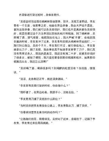 衣服的时候,李友青冲了过来。李友青和吴煜从桃树林开始扭打,一