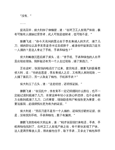 侯大利道:“第四刀是不是另一个人捅的,还得找过硬的证据。但