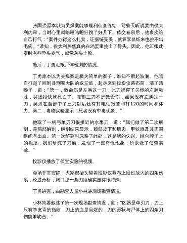 丁勇讲完,由勘查人员小林讲现场勘查情况。