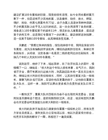 选一批案子划给105专案组,由其继续攻坚克难。”