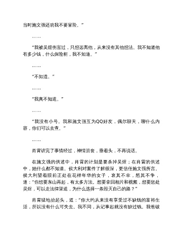 中,她什么都不知道。侯大利对案件了解很深,更信任施文强所言。