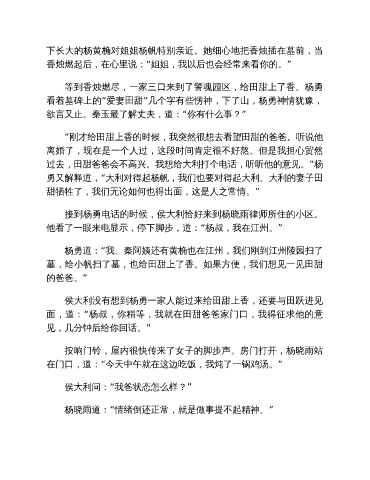 侯大利没有想到杨勇一家人能过来给田甜上香,还要与田跃进见