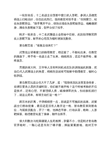 刚才一轮射击,十二名武警战士全部命中目标。此刻助理教官蹲