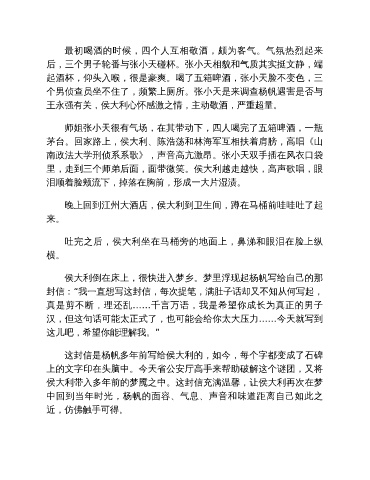侯大利倒在床上,很快进入梦乡。梦里浮现起杨帆写给自己的那