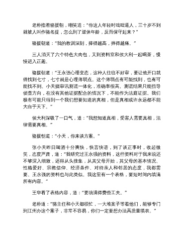 骆援朝道:“王永强心理变态,这种人往往不好审,要让他开口就