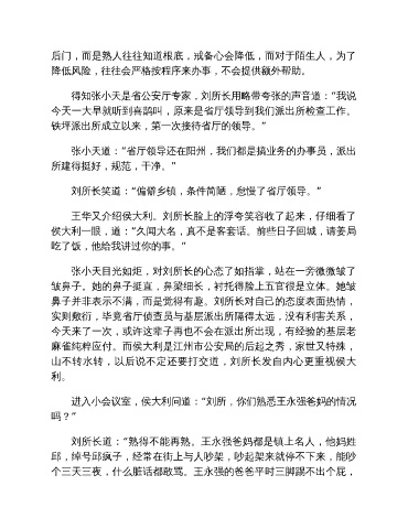 进入小会议室,侯大利问道:“刘所,你们熟悉王永强爸妈的情况