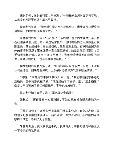 外的事情到现场;王永强是一直在跟踪杨帆,知道其行踪很正常;凶