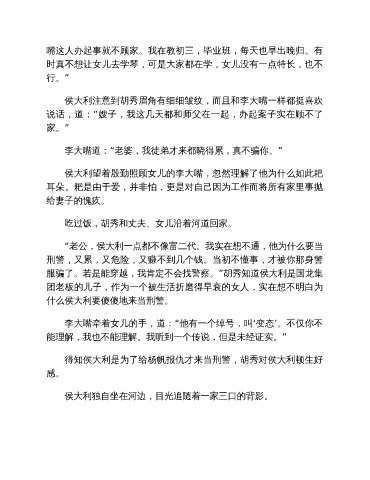 侯大利望着殷勤照顾女儿的李大嘴,忽然理解了他为什么如此耙