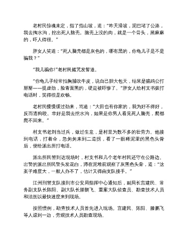 到电话,打着伞,急匆匆来到二道拐,看了一眼稀泥里的黑色头骨