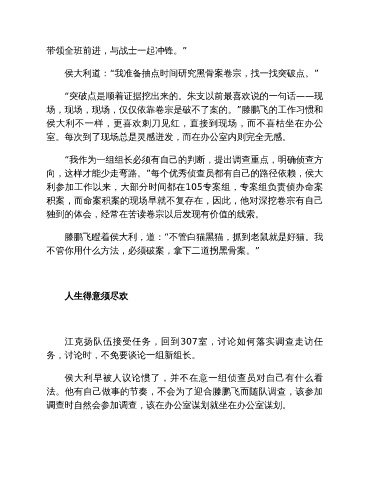 独到的体会,经常在苦读卷宗以后发现有价值的线索。