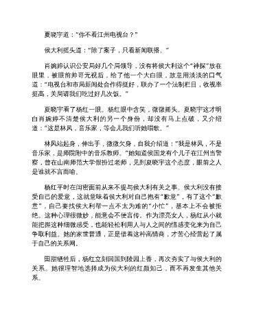 关系。她很理智地选择成为侯大利的红颜知己,而不再发生其他关
