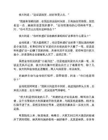 句,侯大利和金传统走进雅筑,两人勾肩搭背,有说有笑。