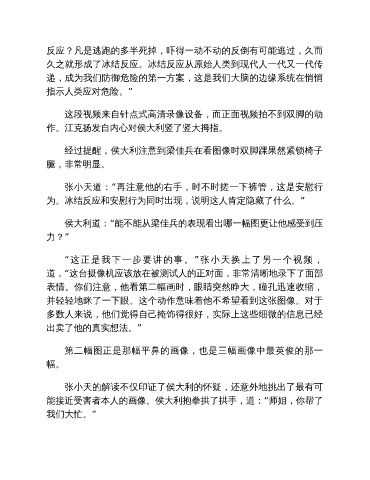 为。冰结反应和安慰行为同时出现,说明这人肯定隐藏了什么。”