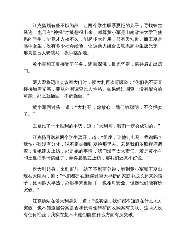 江克扬颇有些不以为然,让两个学生联系夏艳的儿子,寻找蛛丝