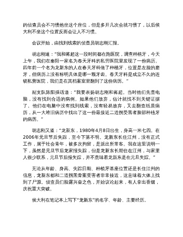 会议开始,由找到线索的侦查员胡志刚汇报。