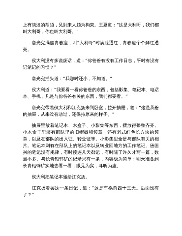 侯大利没有多说废话,道:“你爸爸有没有工作日志,平时有没有