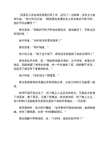 侯大利和江克扬检查完唐国兴遗留下来的所有物品,一无所获。