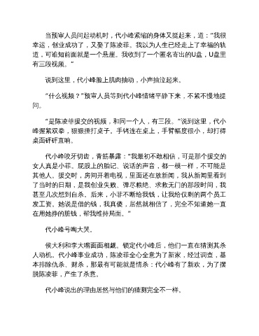 “什么视频?”预审人员等到代小峰情绪平静下来,不紧不慢地提