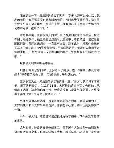 张睿犹豫一下,最后还是道出了实情:“我和大辉有过性生活,我