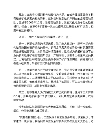 其次,袁来安汇报到长青档案馆的情况。在长青县档案馆查了长