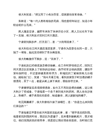 大利少了些戒备。宁凌端着一个盘子来到侯大利房间。两人坐在沙发