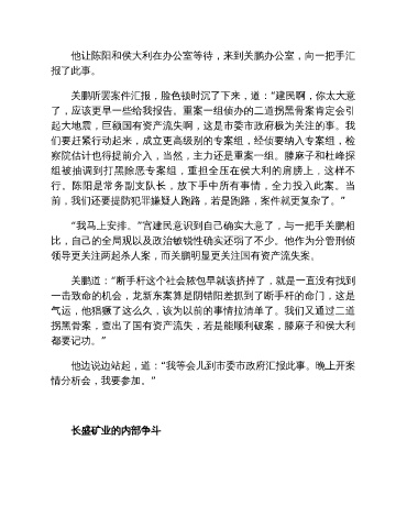 领导更关注两起杀人案,而关鹏明显更关注国有资产流失案。