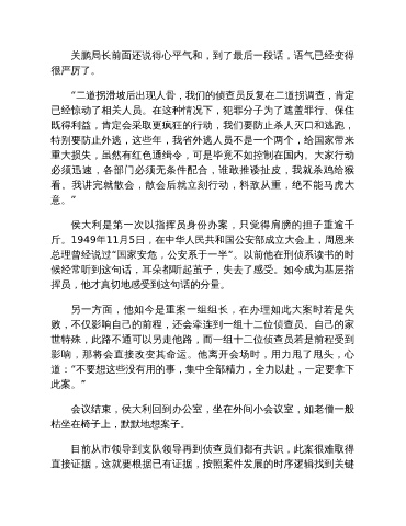 侯大利是第一次以指挥员身份办案,只觉得肩膀的担子重逾千