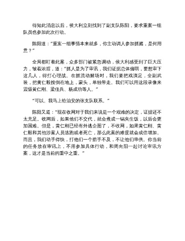 得知此消息以后,侯大利立刻找到了副支队陈阳,要求重案一组