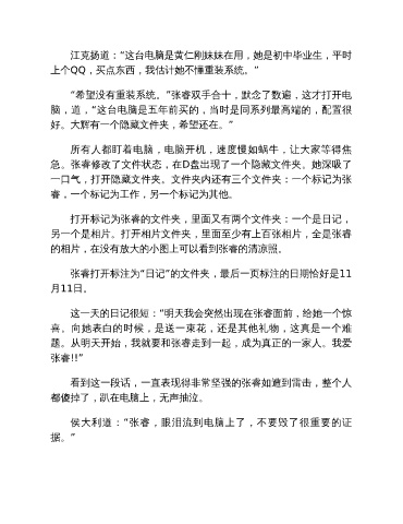 急。张睿修改了文件状态,在D盘出现了一个隐藏文件夹。她深吸了