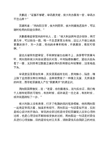 关鹏道:“证据不够硬,审讯最关键,侯大利办案有一套,审讯水