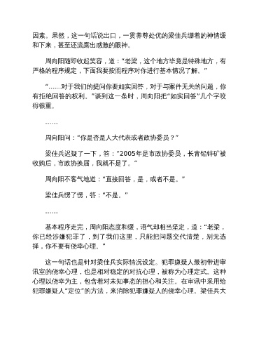 犯罪嫌疑人“定位”的方法,来消除犯罪嫌疑人的侥幸心理。梁佳兵大